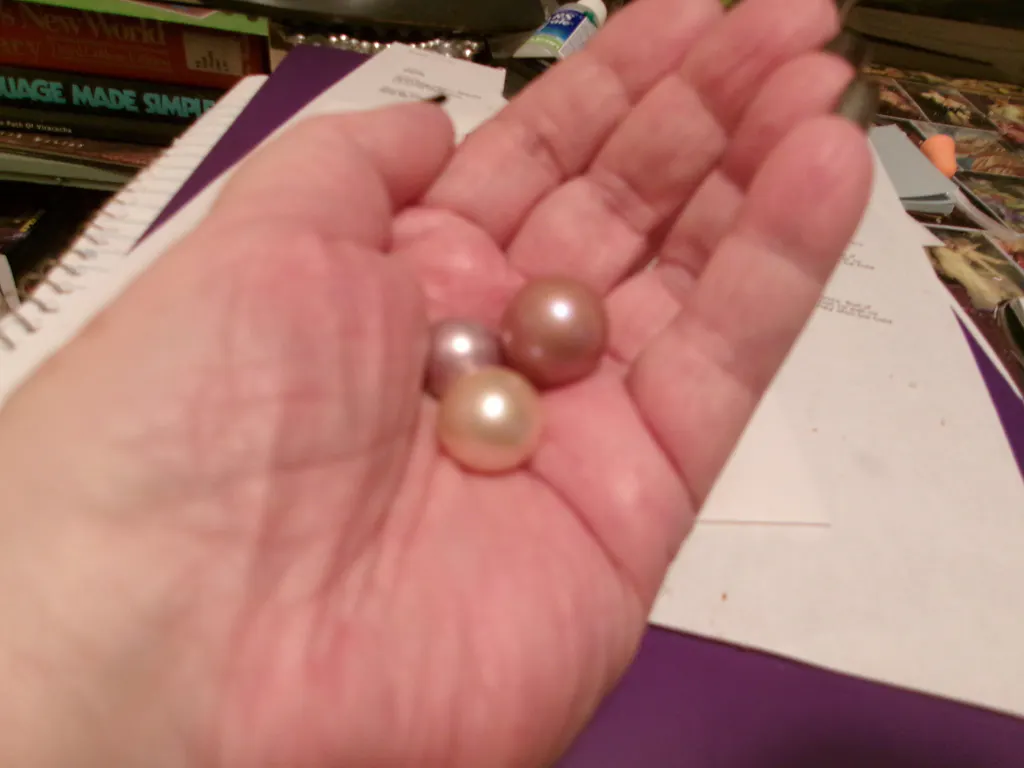 Paula Wolfe I LOVED MY ORDER.ONLY PROBLEM WAS....I WANTED THE LARGE "PURPLE" EDISON BALLS WHICH SHOW PURPLE.I GOT 3 PINKS.WHY NOT SHOW PINKS WITH THE PICTURE,SO WE KNOW WHAT WE GET? IT WAS MY FIRST ORDER,AND I WAS SHCKED TO GET PICK.CHANGE THE PICTURE ..WAS LET DOWN.WHEN YOU GO THAT HIGH FOR A PEARL,YOU WANT WHATS IN THE PICTURE